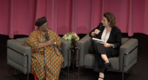 In an uplifting call toward “compassion justice,” Ross emphasized that passion without compassion can lead to brutalization and silencing of one another. To practice calling in, Ross empathized “you can always say what you mean and mean what you say, but you don’t have to say it mean. [The key is] calling attention to the harm without intending to wound or humiliate.” When Ferdman brought up an example from Ross’s book of a university professor reading a poem containing the N-word and getting reassigned due to student objections, Ross reflected that instead of jumping to cancel the professor, calling in would have involved asking the professor why he would act in such a way that risks hurting others.