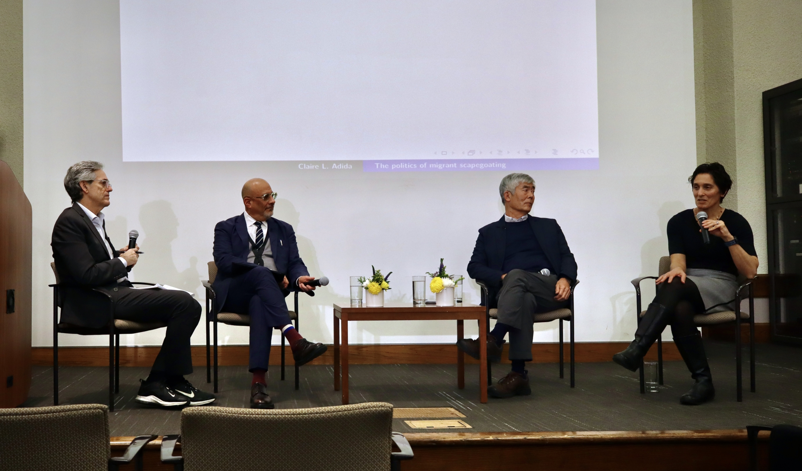 Panel (from left to right): David Myers, Abel Valenzuela Jr., Hiroshi Motomura and Claire Adida. Photo by Hannah Park.