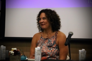 Joseph then took to the stage to address the audience of fellow professors, students, alumni, and Los Angeles community members. She called her work “theoretical as well as very personal.” She then described the racial dialoguing program that she led in the fall of 2016 that eventually inspired Racial Exhaustion.