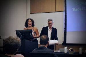 After Joseph’s insightful introduction, Myers invited several panelists to the stage. Mousa, Kelley, Scorza and Myers each shared their reactions to Racial Exhaustion, and how they related Joseph’s methodologies and stories to their own work.